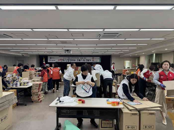 ¡ã ÀÚ¿øºÀ»çÀÚµéÀÌ ¡®»ç¶ûÀÇ ¼±¹°²Ù·¯¹Ì¡¯ Æ÷Àå ÀÛ¾÷À» Çϰí ÀÖ´Ù